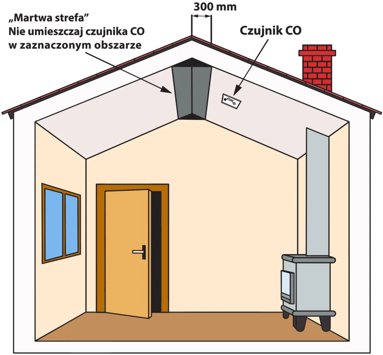 - Nie instaluj czujnika w pobliżu źródeł ciepła, takich jak piece, kominki czy grzejniki.