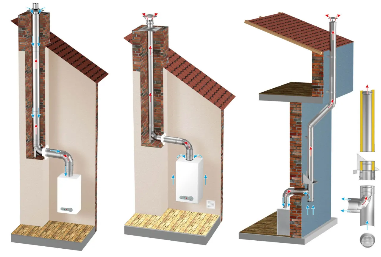 - Różnice temperatur między ciepłymi spalinami a zimnym powietrzem zewnętrznym wspomagają proces wentylacji.